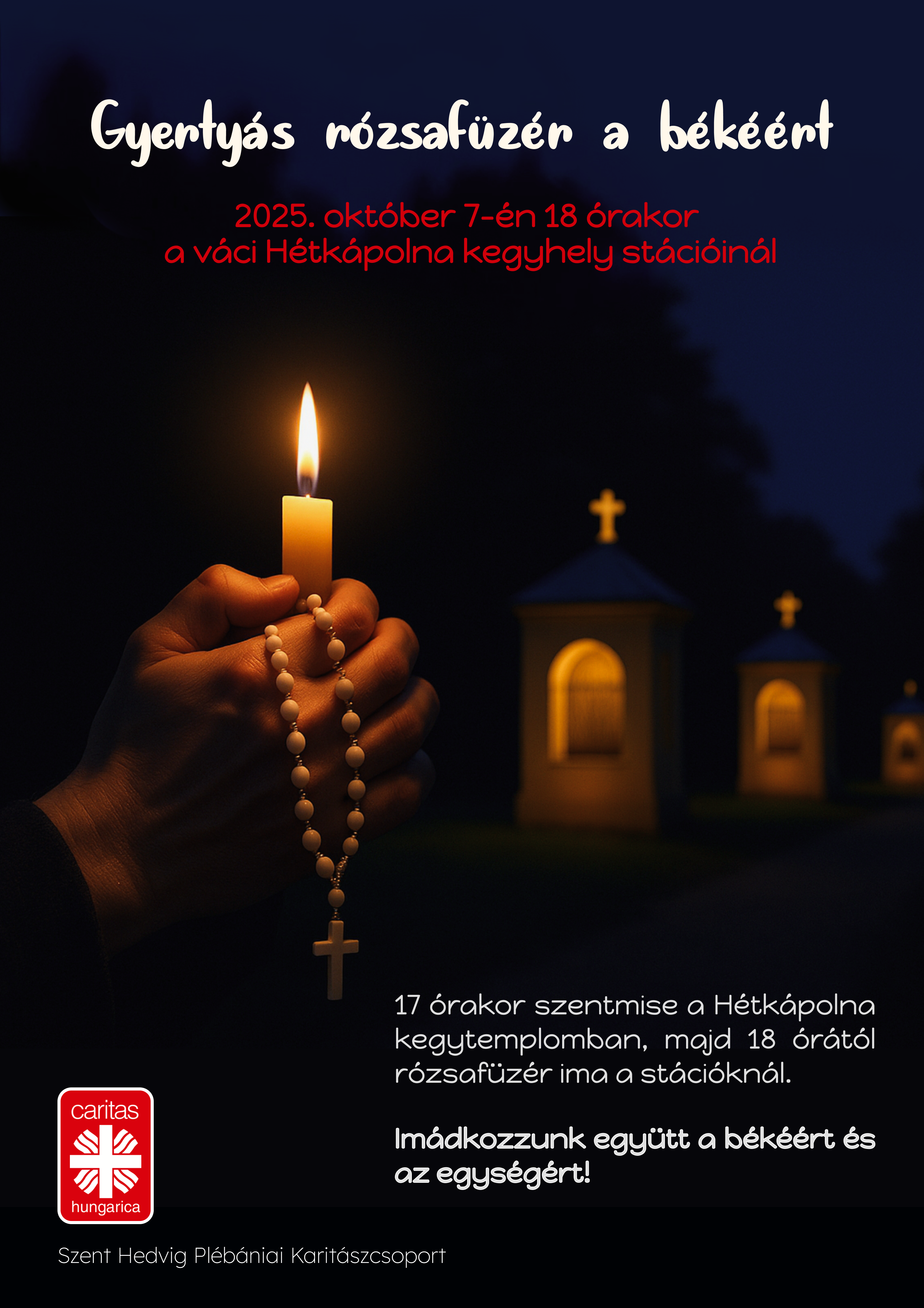 Magyarok Nagyasszonya ünnepének előestéjén, október 7-én 17 órakor lesz szentmise a Hétkápolnánál. Utána a Szent Hedvig Karitászcsoport koordinálásában, XIV. Leó pápa felhívására, valamint az „Egymillió gyermek imádkozza a rózsafüzért” nemzetközi kezdeményezéshez csatlakozva 18 órai kezdettel a Hétkápolna stációinál gyertyás-rózsafüzér imádságra hívunk mindenkit: Imádkozzunk együtt a békéért és az egységért!